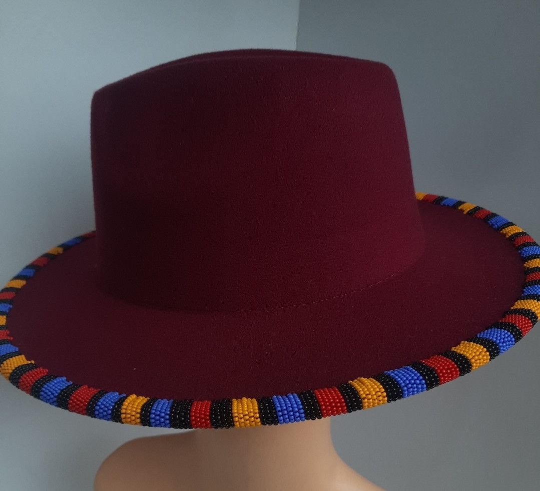 Maroon Round Styled Beaded Fedora