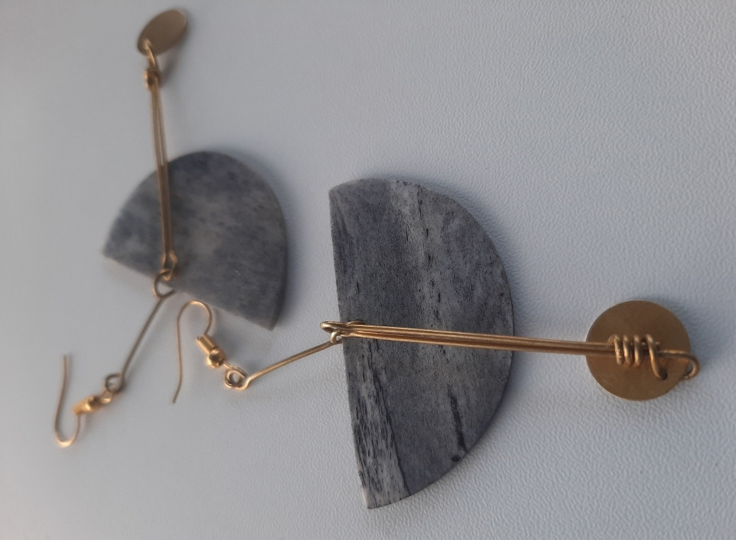 Grey Bone and Brass Earrings