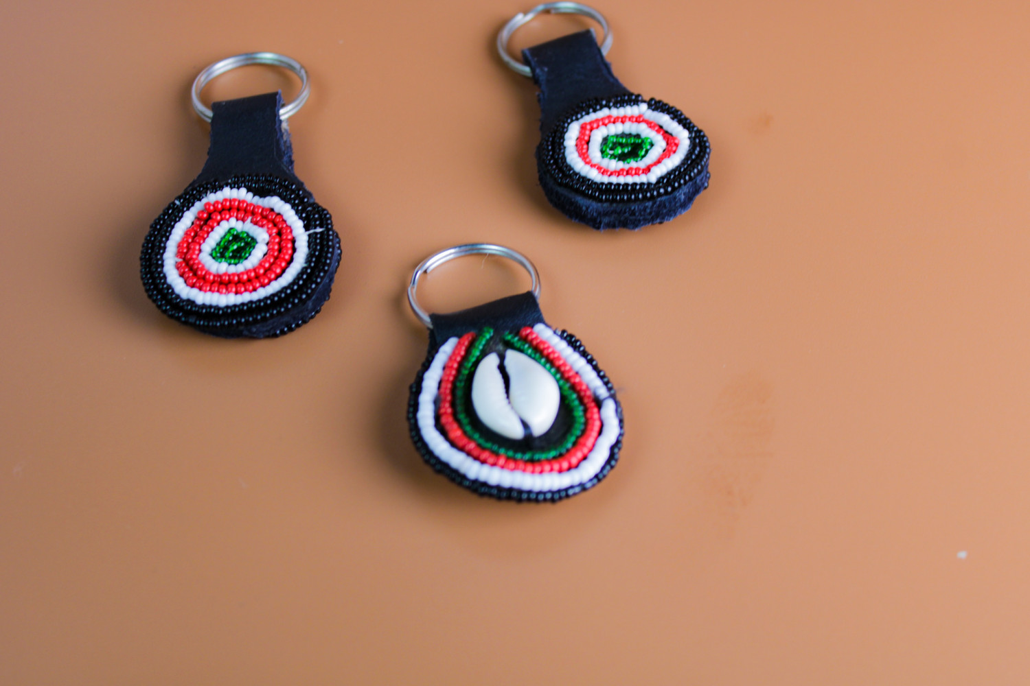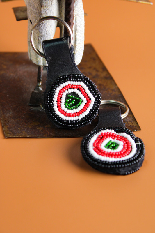 Kenyan Flag Beaded Round Key Ring (3)