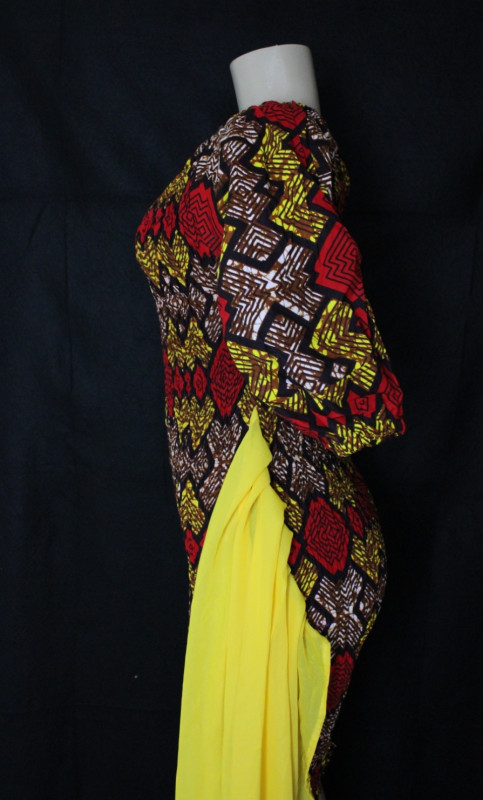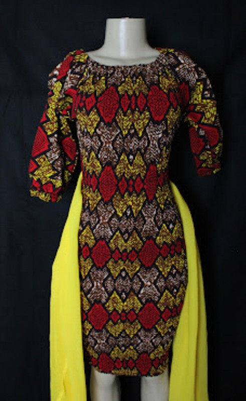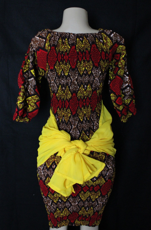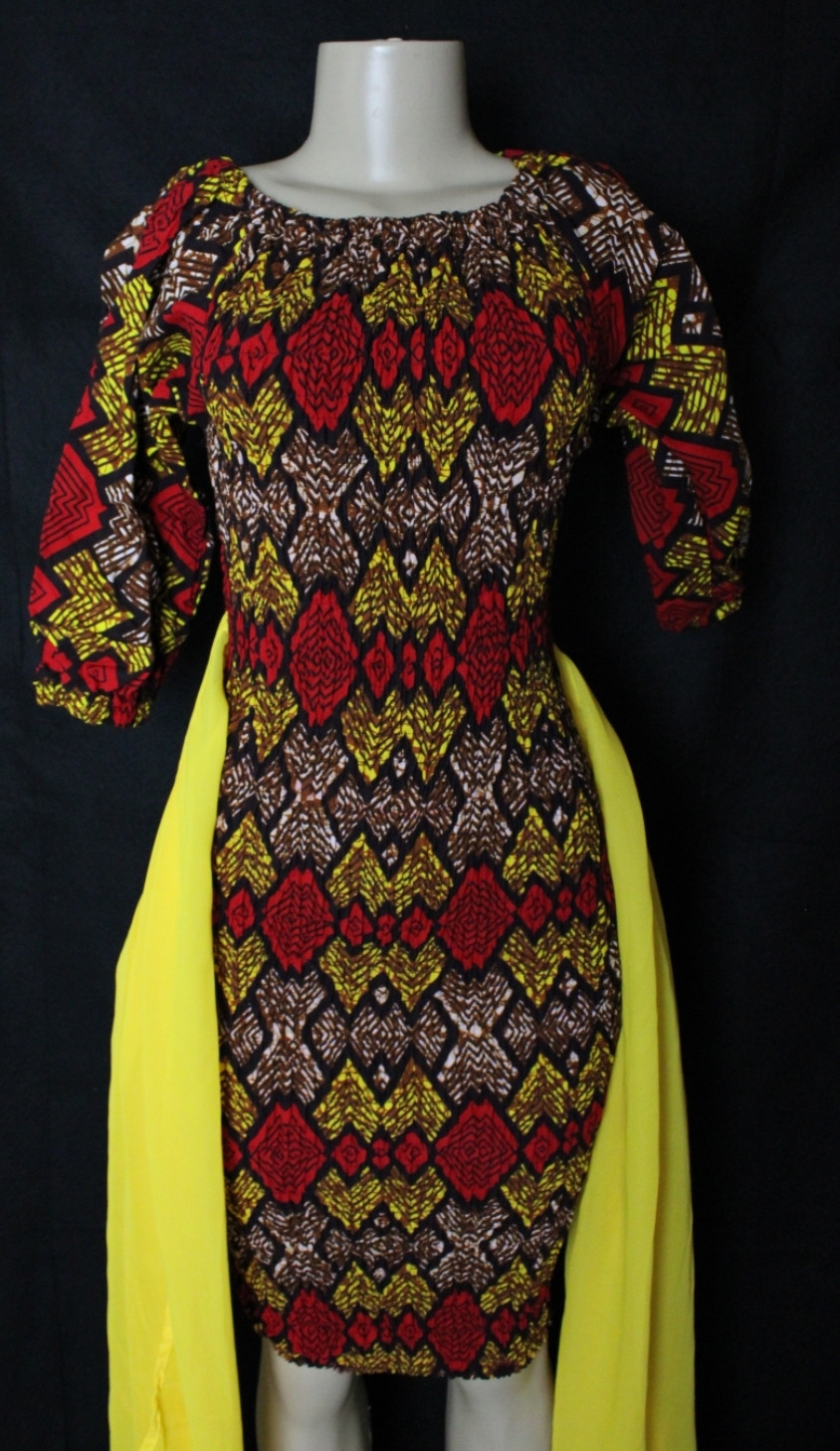 Spandex Ankara dress with side chiffon flaps that can be tied in front, side or at the back.