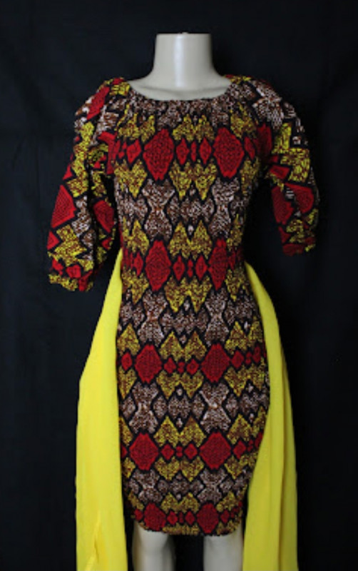 Spandex Ankara Dress With Side Chiffon Flaps.